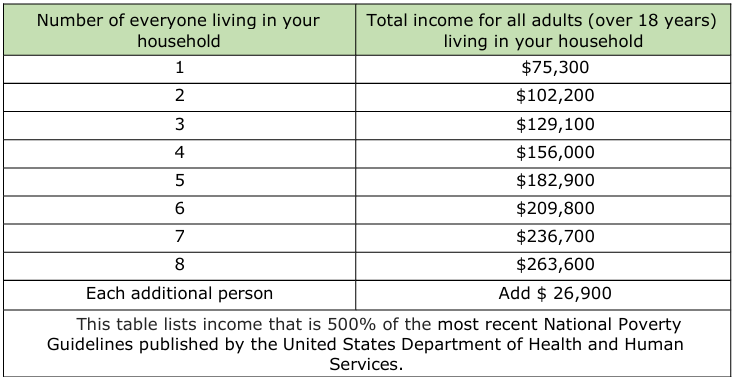 Is your household income (everyone who lives in the home) less than 500% of the